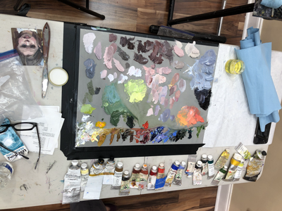 You may ask why many of the students in the photos don't have masks while the workshop was in the midst of COVID. All 14 of us started our days masked, took COVID tests, and after waiting the prescribed 15 minutes for results, were allowed entry to the studio. Some chose to remain masked nonetheless.